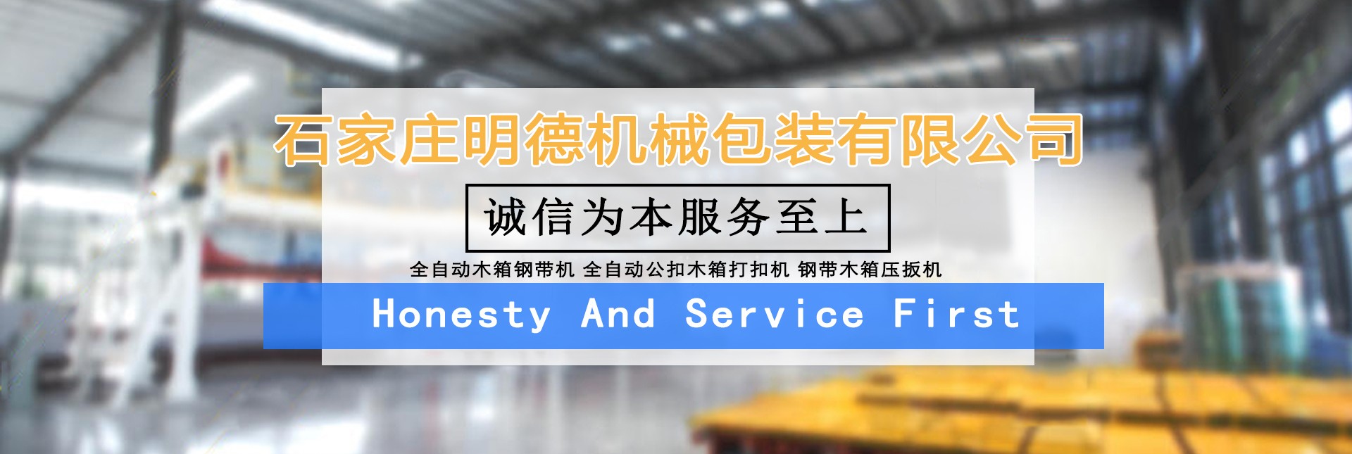 石家莊明德包裝機(jī)械有限公司是國內(nèi)專業(yè)生產(chǎn)木全自動(dòng)木箱鋼帶機(jī)、半自動(dòng)公母扣木箱打扣機(jī)、全自動(dòng)雙排孔定長切斷機(jī)、美式托盤打釘機(jī)械、托盤刨槽機(jī)、倒角機(jī)、木包裝箱、木托盤的生產(chǎn)廠家。